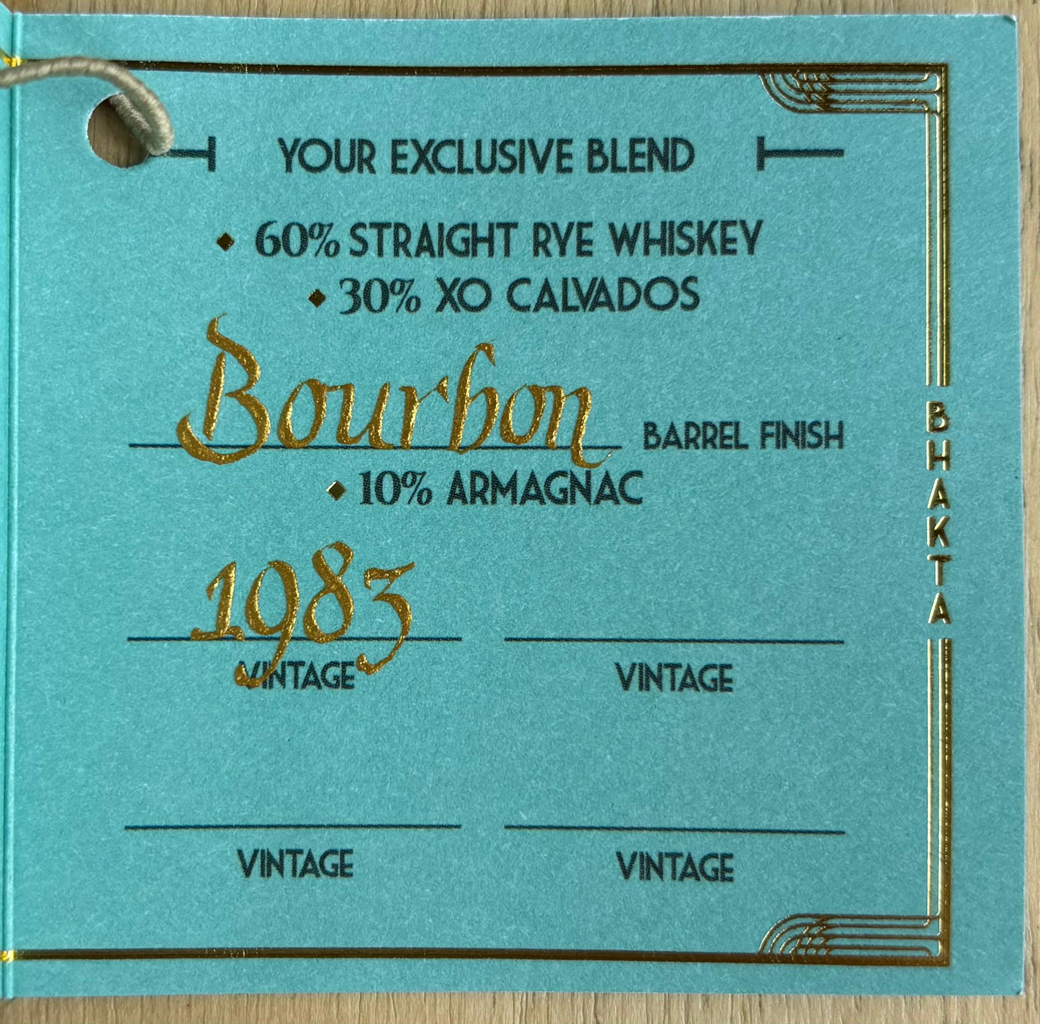Bhakta 1928 Private Selection: Chakk De Smiles! (10% 1983 Vintage Armagnac, 30% XO Calvados Bourbon Barrel Finish, 60% Rye Selected by Norfolk Whisky Group)