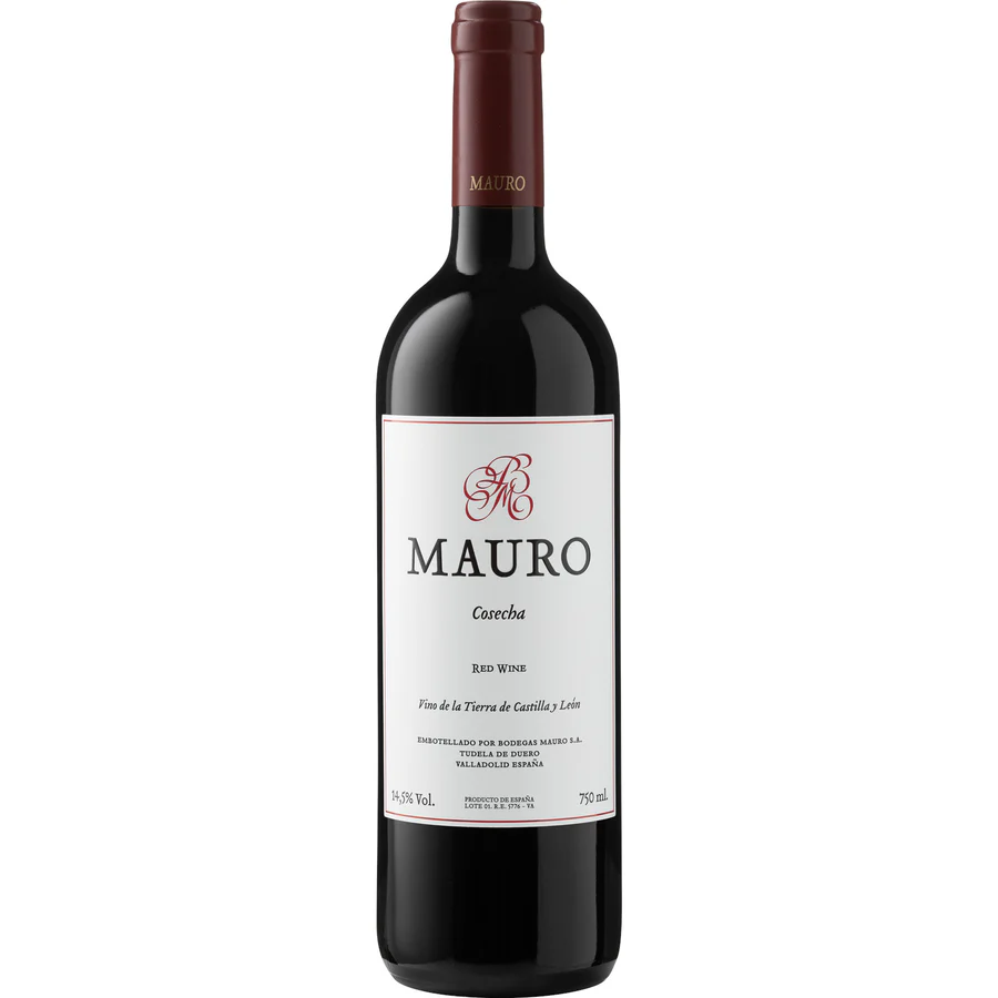 Mauro Cosecha, produced by Bodegas Mauro in the Duero Valley (Castilla y León, Spain), is a vibrant and intense young red wine. It is crafted mainly from Tempranillo with small amounts of Syrah, Cabernet Sauvignon, and Graciano. Known for its deep, purple-black hue and concentrated flavor profile, this wine expresses ripe black fruit and exotic spice notes.