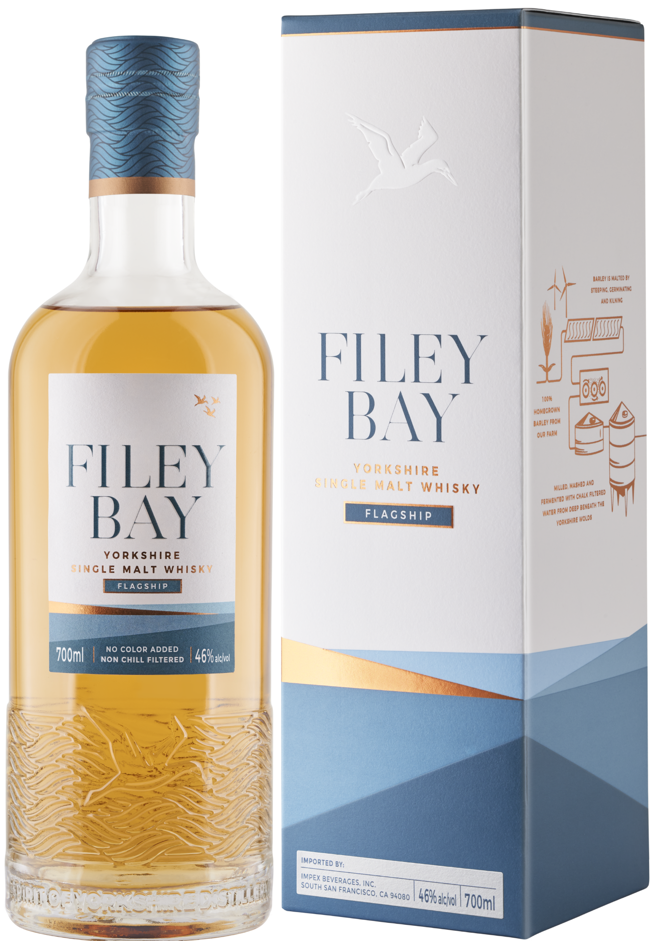 Filey Bay Flagship is a beautifully rounded, soft, fruity, and creamy Single Malt whisky, made with 100% homegrown barley bottled at 46% alc..