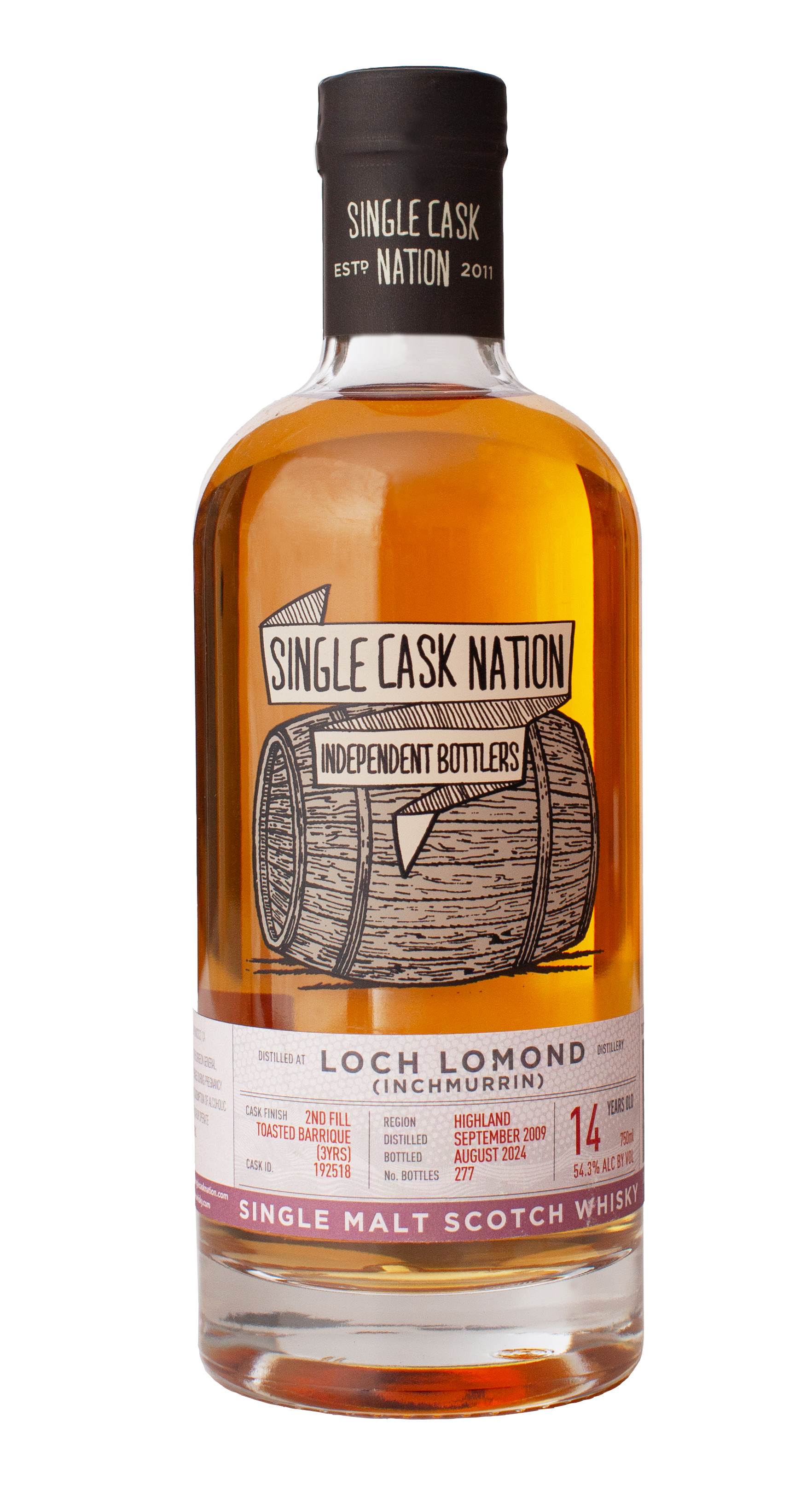 Single Cask Nation – Loch Lomond (Inchmurrin) 2009 14 Years Old Cask 192518 2nd Fill Toasted Hogshead (3Years Olds) (750 ml) 54.40%