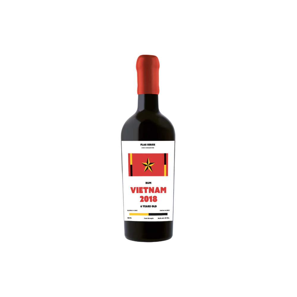 Flag Series Vietnam 2018 Rum offers cocktail drinkers a rare glimpse into Vietnamese rum-making heritage, where hand-harvested endemic sugarcane from Quang Nam province meets French Caribbean distilling traditions through a copper Armagnac column still—a unique combination that yields a vibrant, complex spirit with distinctive tropical aging character at cask strength (55.5% ABV), bottled completely natural without water, coloring, or filtration from a single ex-Cognac cask that produced just 213 bottles.