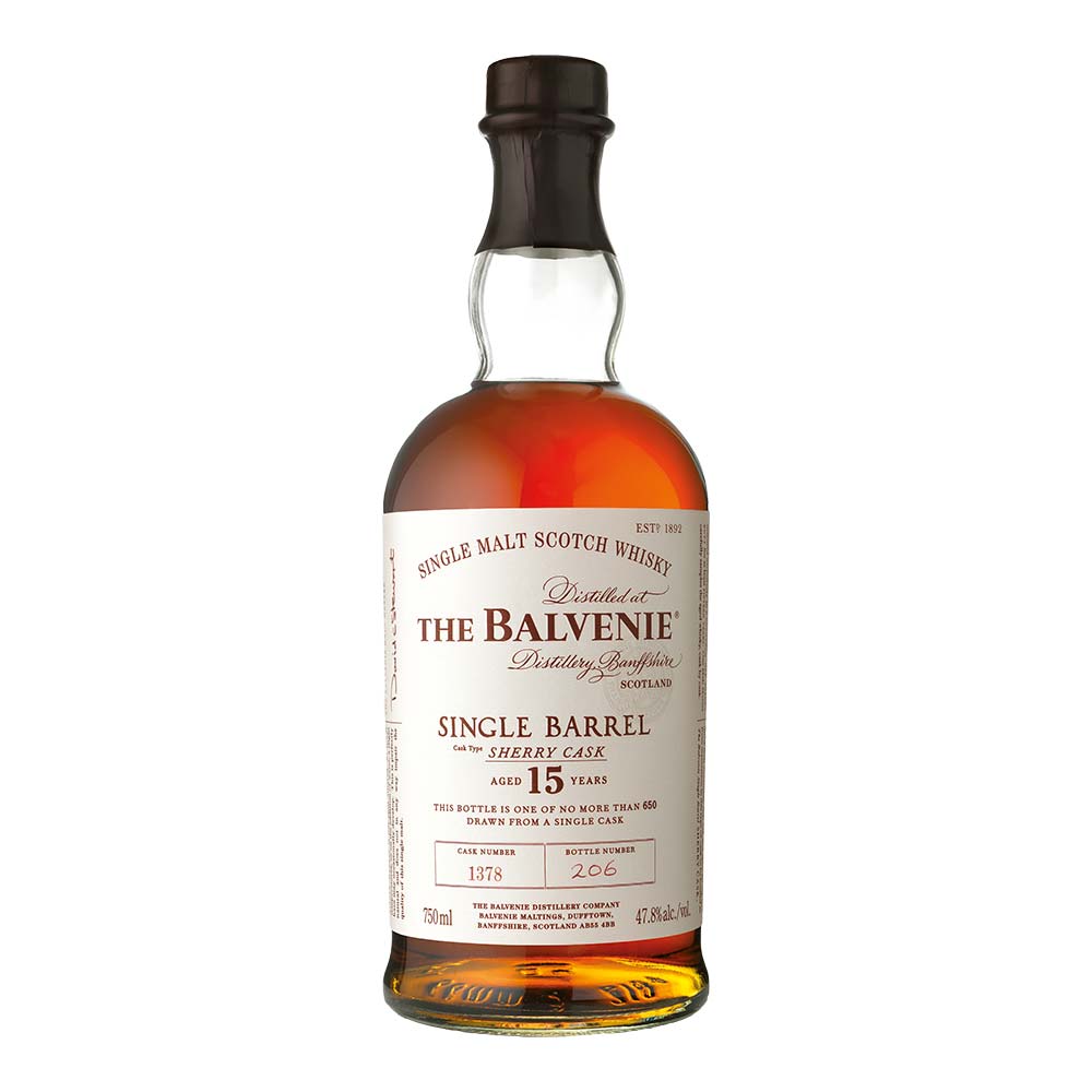 The Balvenie Single Barrel Sherry Cask has been matured exclusively in a single European oak sherry butt for at least 15 years. The term ‘Single Barrel’ conveys the unique nature of the single malt whisky, which has been drawn from a single cask of a single distillation.
