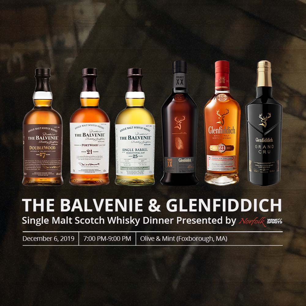 Tickets are $100 per person ($85 per person for groups of 4+). Each ticket includes attendance for one adult, your choice of a bottle of The Balvenie Caribbean Cask Aged 14 Years or Glenfiddich 15 Year Old (to be picked up at Norfolk Wine & Spirits), a Glencairn whisky glass, and other Balvenie and Glenfiddich swag.