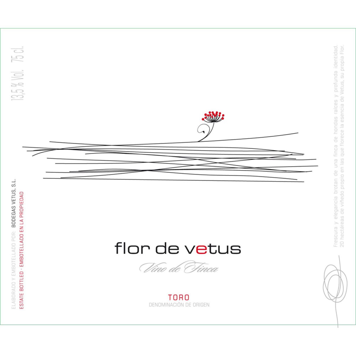 The entry-level Toro from Vetus is sourced entirely from estate Tempranillo planted on loamy clay soils in 1990. The fruit is harvested by hand in early October, destemmed and lightly crushed for fermentation in stainless steel tanks. It is aged for 9 months in French (50%) and American (50%) oak barrels.